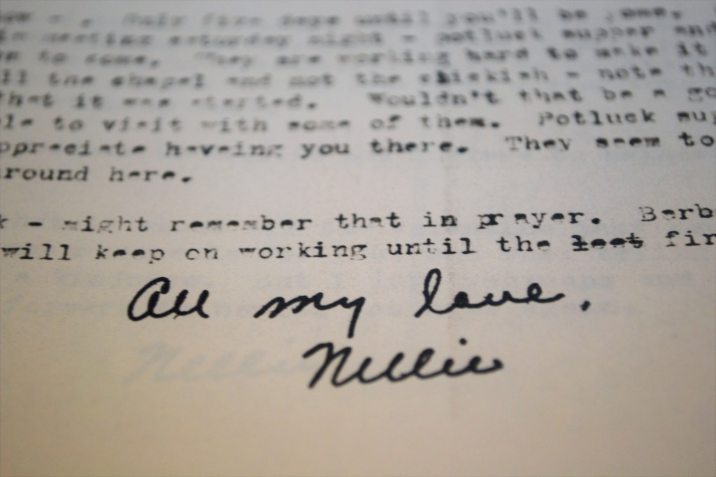 I don’t imagine that you have been able to do anything about Christmas gifts for the folks since you haven’t had any money either. Should the Lord see fit to send in some gifts this week, I’ll send down things for Bob and Ruth with Nita when she comes down on Friday. Marion called me last night to see if I would have anything I would like to send down to you with her. I may also send some clothes to the PGM (Pacific Garden Mission) if she doesn’t mind taking them. She could give them to you and you could deliver them on your way home next week.