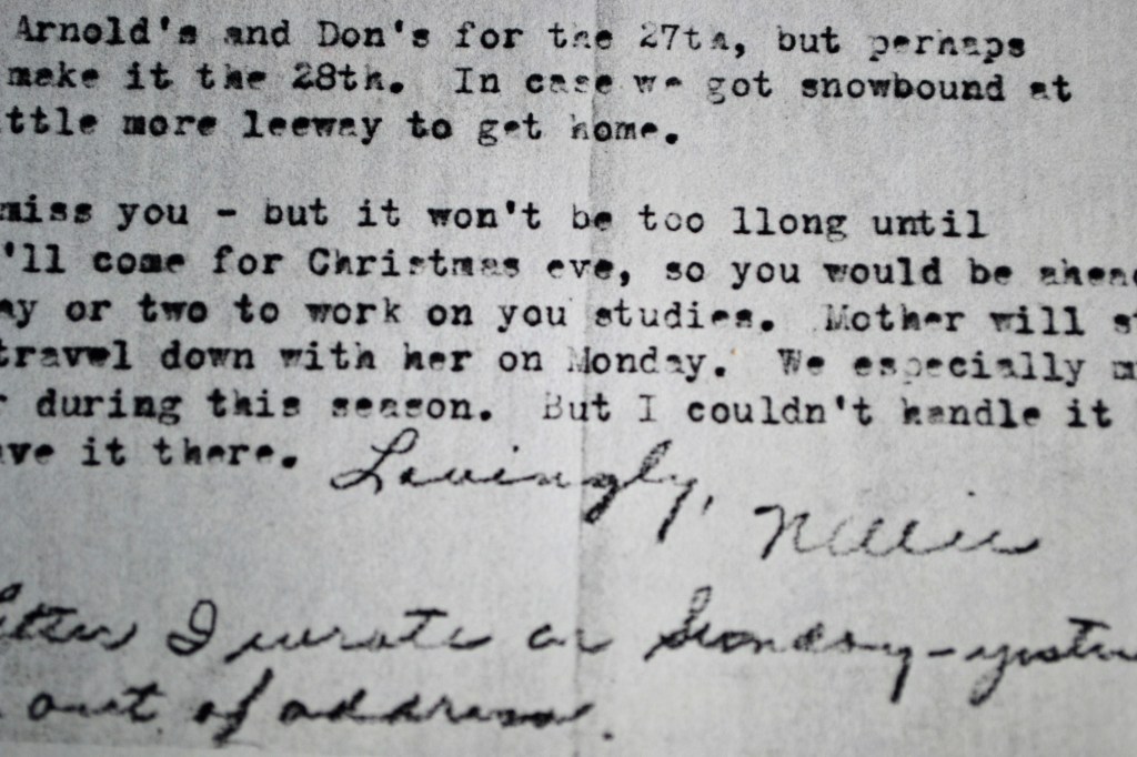Now I must close. The mailman comes early. What shall we get David? He wants a horn or a watch. I have got most of the other children’s gifts. Clothes from us and trucks, etc. from what Grandma gave us.