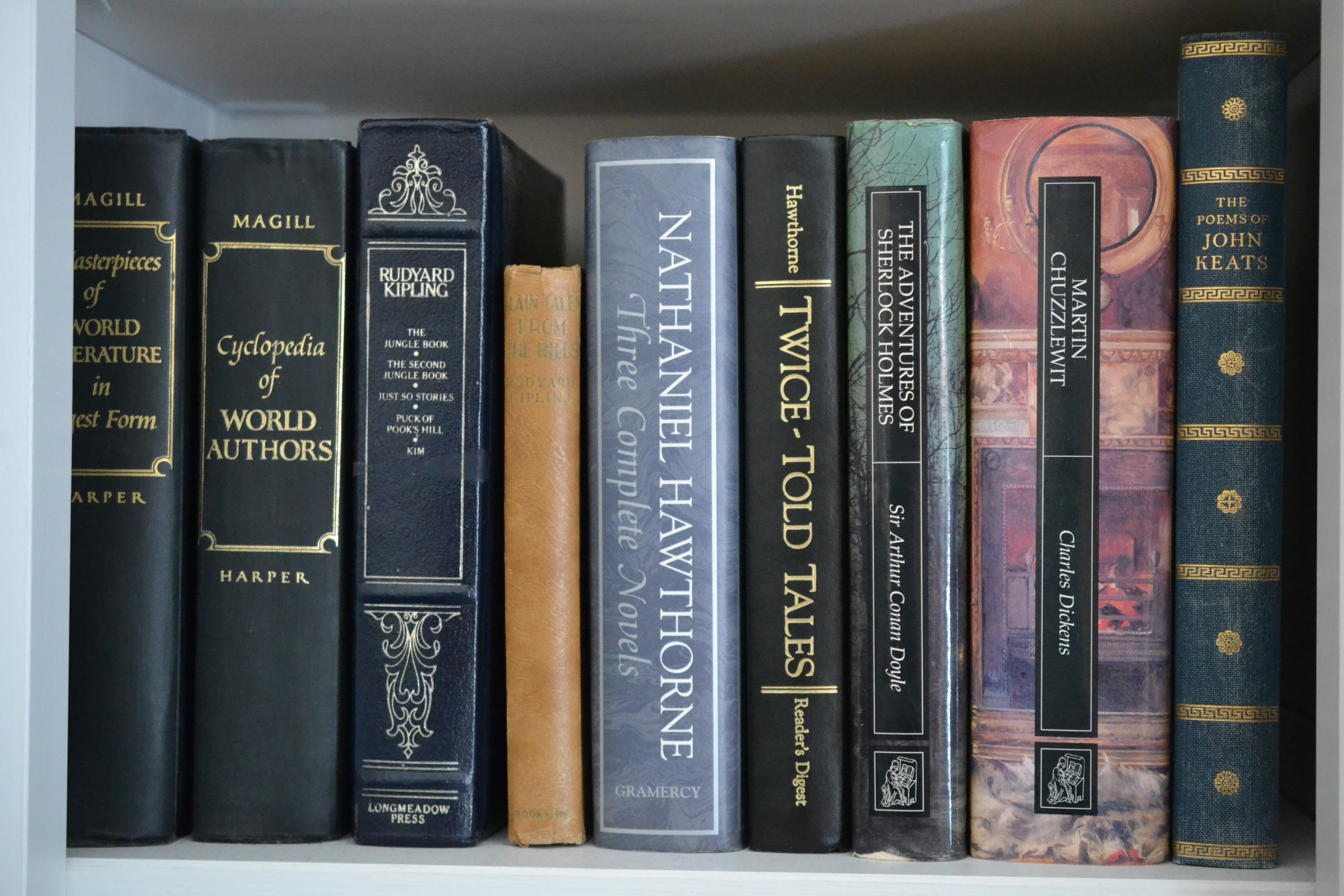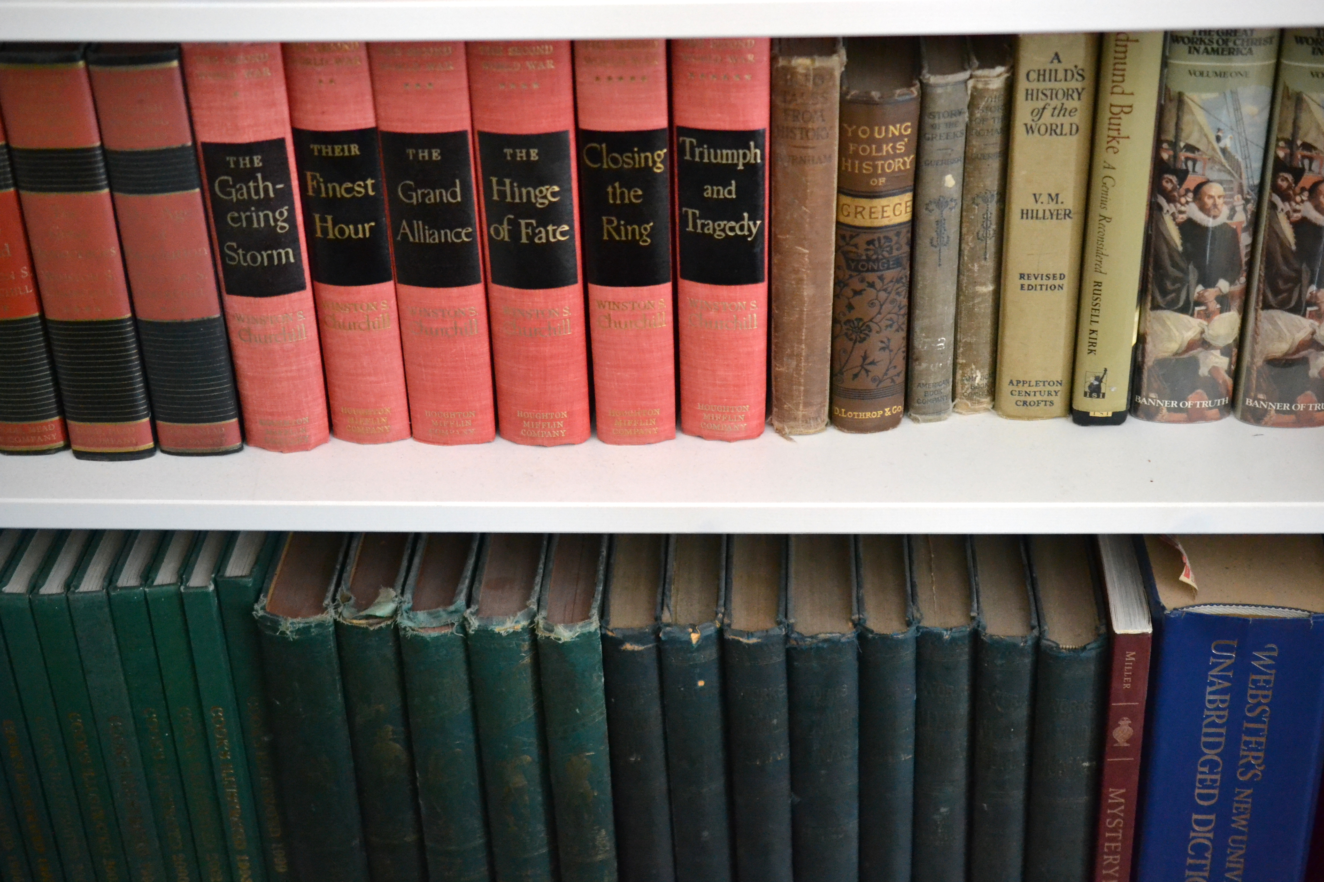 Two sets of Churchill to choose from: I’ve read A History of the English-Speaking Peoples and would like to re-read them. But Edmund Burke beguiles me. Three sets sit on the bottom shelf: 13 years of Cook’s Illustrated, a set of Dumas and a set of Dickens.