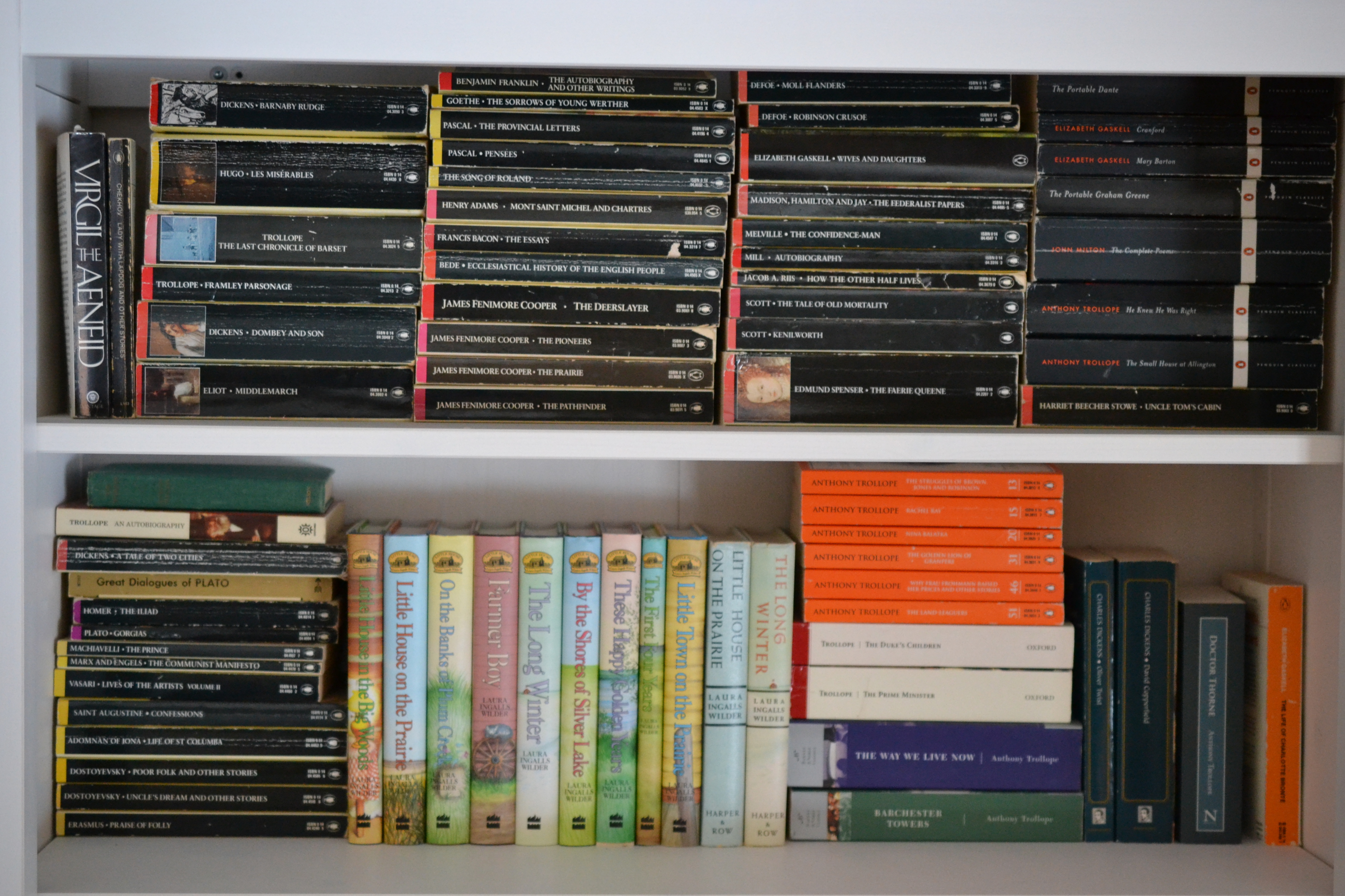 Oh to have room to store my beloved Penguin collection upright! Whoever invented orange covers ought to be shot. I would love to read all those orange Trollopes so I can be done with them.